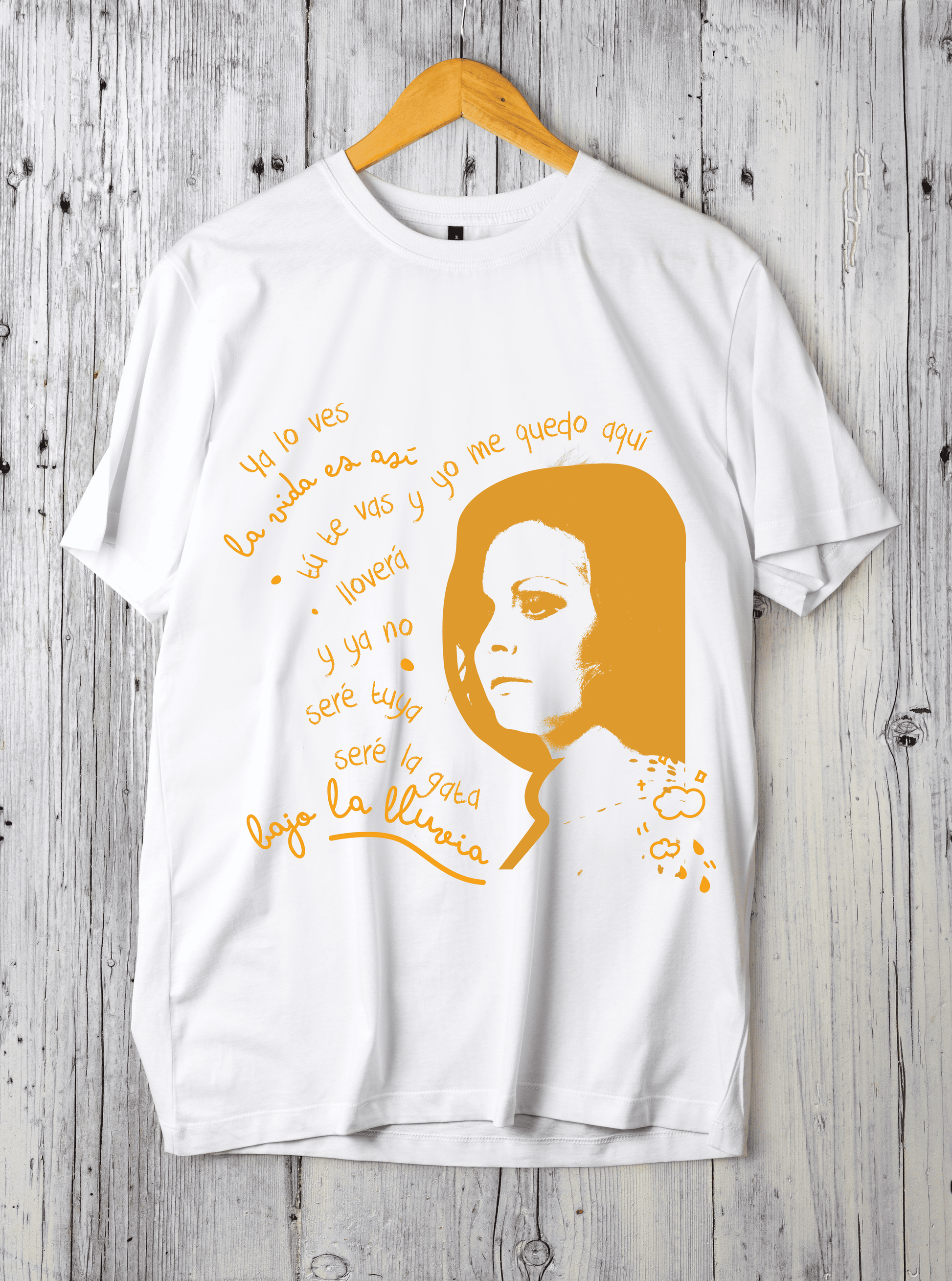 Esta playera homenajea a Rocío Dúrcal con un guiño moderno: despecho, sí… pero con delineado intacto y actitud felina.